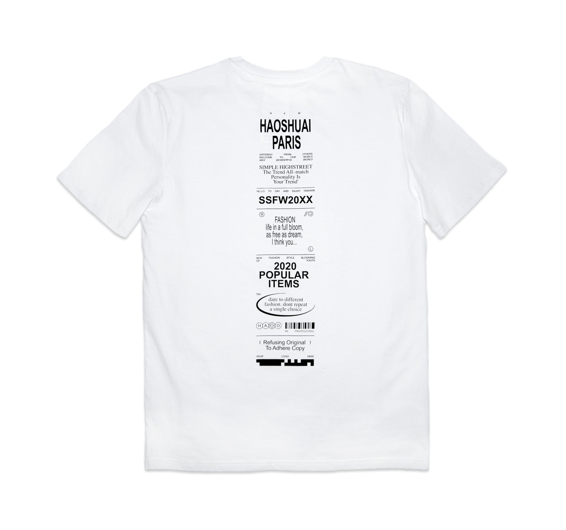 Haoshuai Paris_Fashion Poem T-shirt - black print on the back NEW Unisex streetwear short sleeve tee